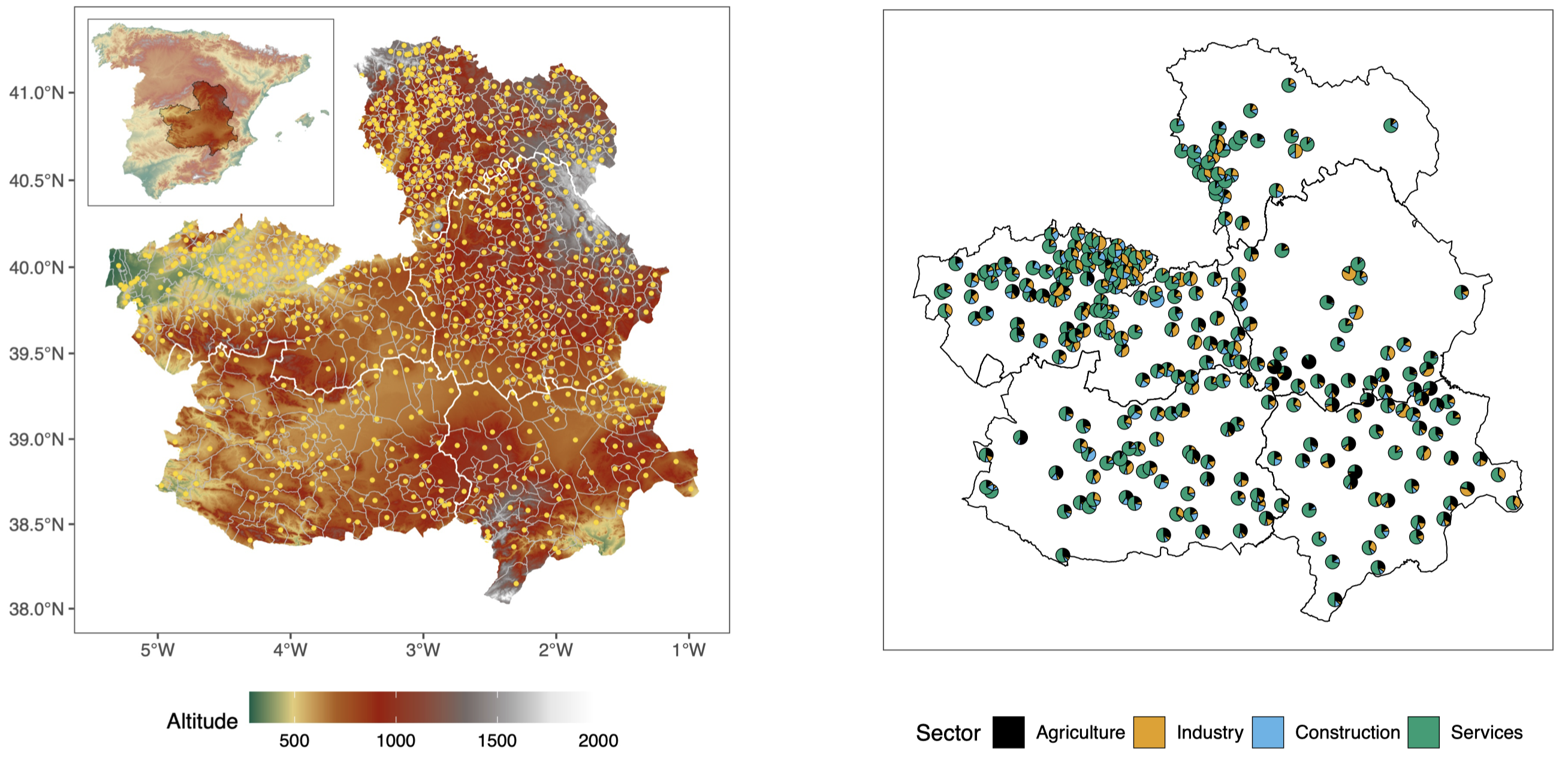 For my Master’s thesis, I went on a deepdive into the theory of spatial point patterns – a special type of geodata. I developed new statistics to describe such data, tested them in several simulations and applied them to a real world dataset on business-sector compositions in Spain. My supervisor was Dr. Matthias Eckardt. We are currently preparing this work for publication.